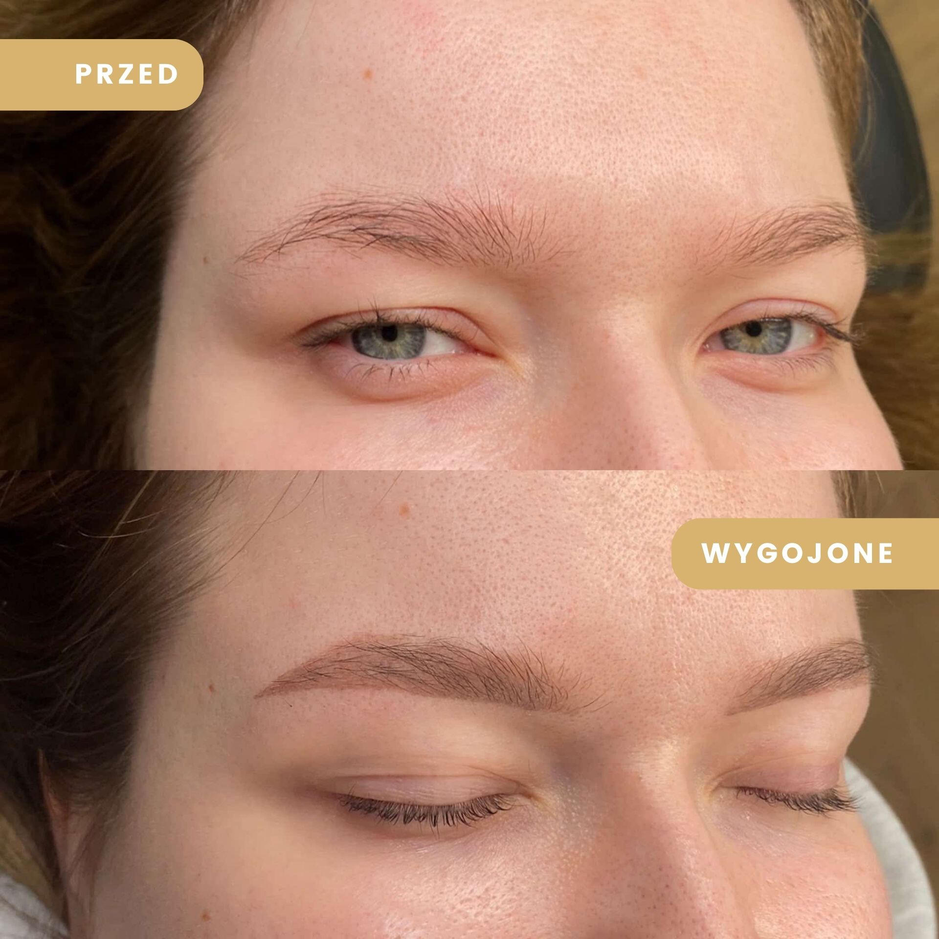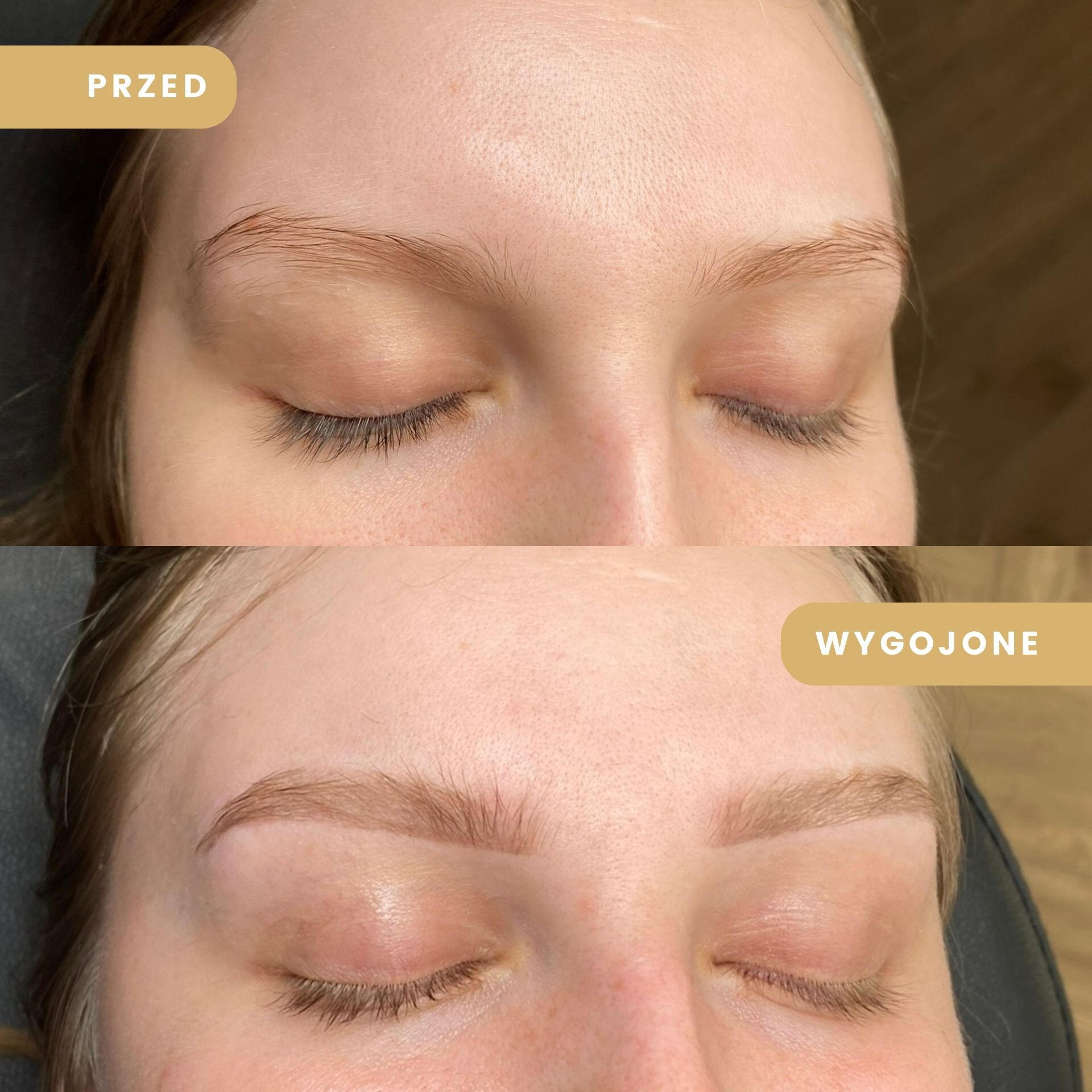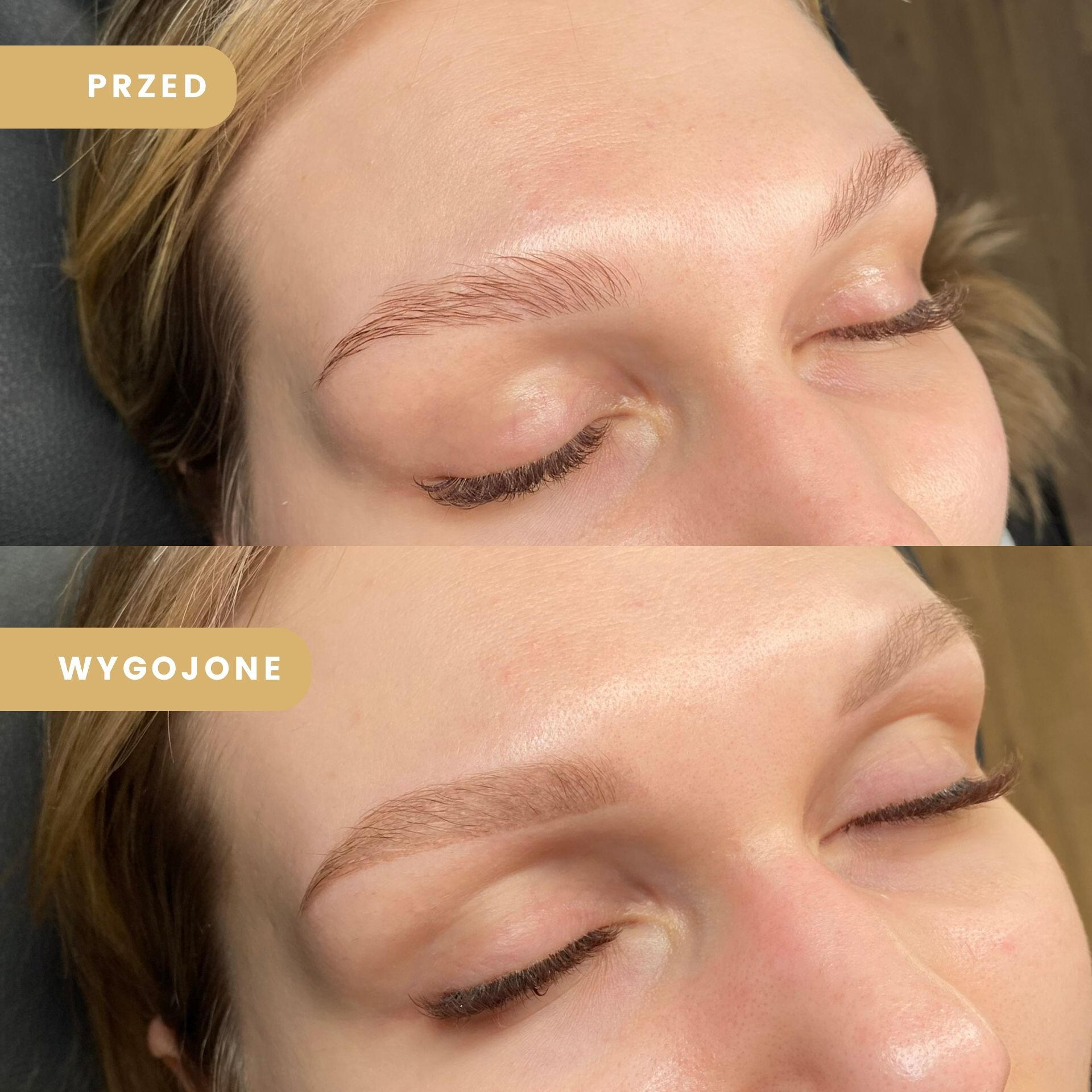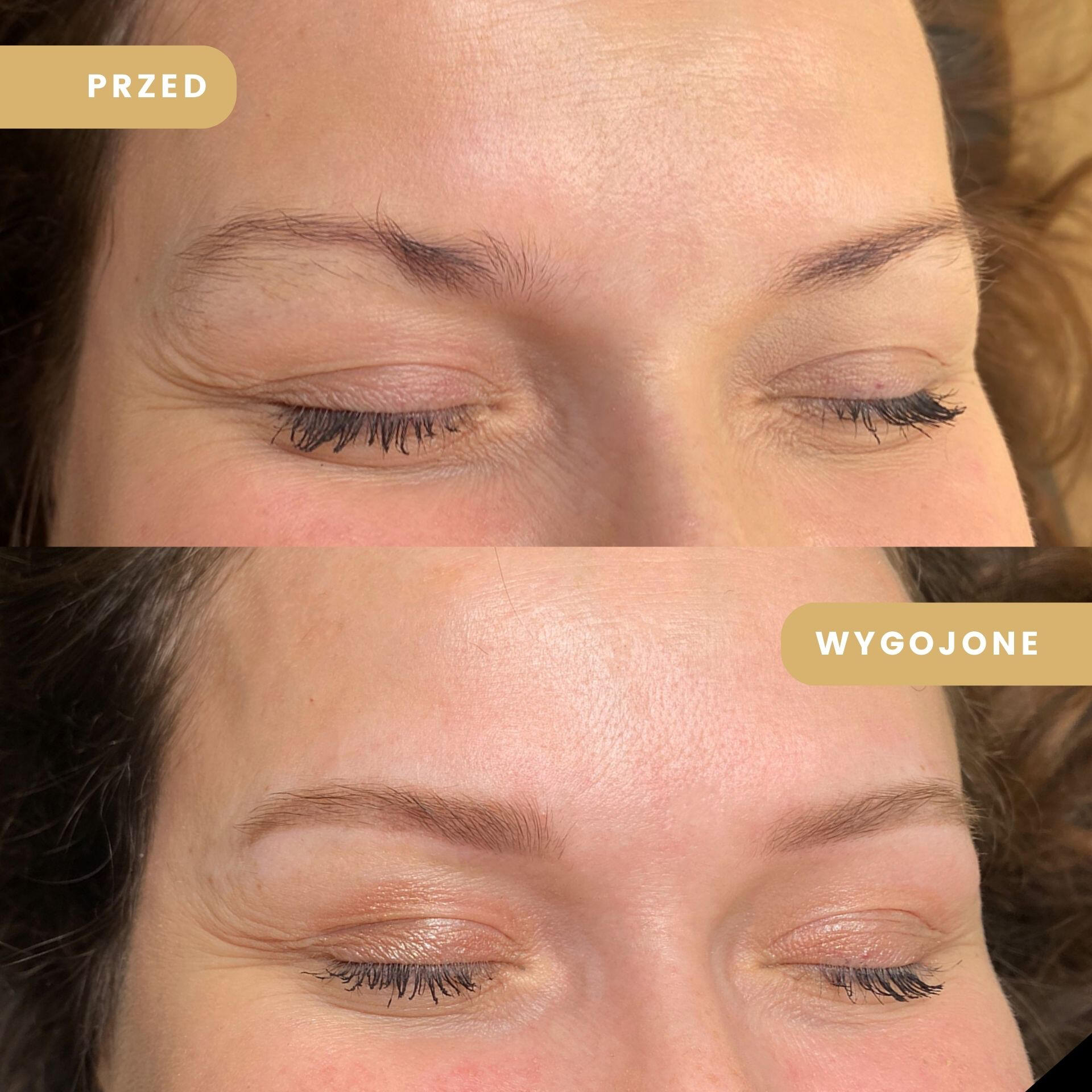 Brwi mogą być trochę ciemniejsze, pojawi się delikatny strupek (nie drapiemy!). Potem kolor lekko się „zmywa” i stabilizuje. To zupełnie normalne.Dopigmentowanie (po ok. 6 tygodniach)